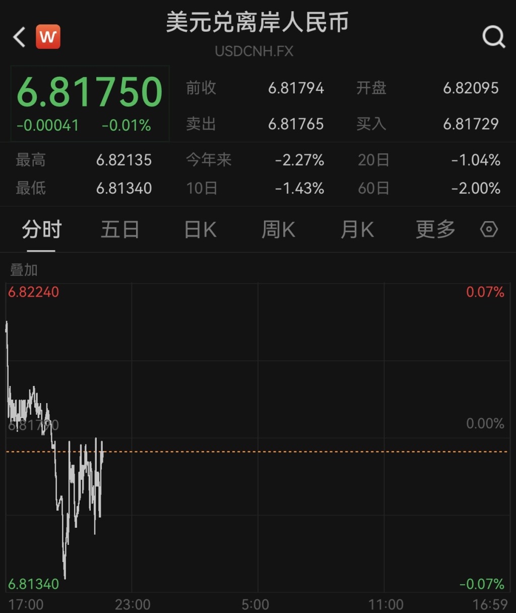 4月14日早间,更多反映国际投资者预期的离岸人民币对美元汇率涨至6.8134,创下2023年3月23日以来新高。