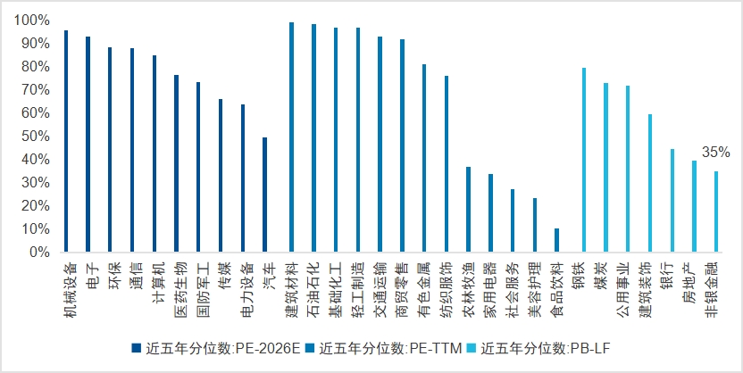 图:截至4月9日各申万一级行业的近5年估值分位数