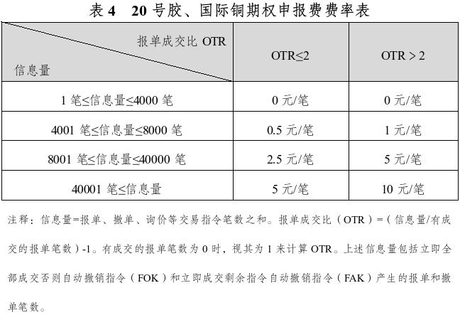 20号胶、国际铜期权对客户信息量收取申报费,如下表所示。
