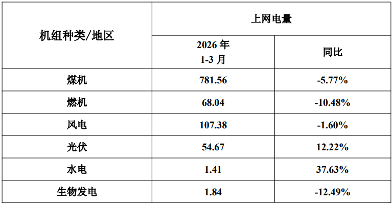 4月14日,华能国际(600011/00902)发布公告,2026年第一季度,公司中国境内各运行电厂按合并报表口径完成上网电量1014.89亿千瓦时,同比下降4.82%。平均上网结算电价为460.73元/兆瓦时,同比下降5.63%。