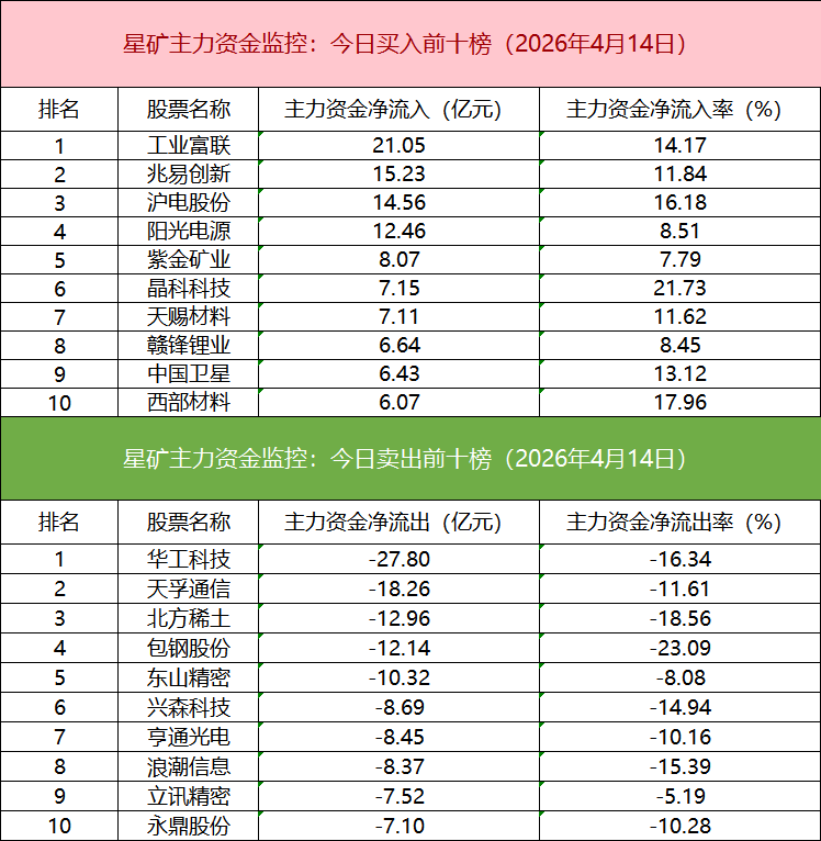 从个股主力资金监控数据来看,主力资金净流入前十的个股所属板块较为分散,工业富联净流入居首。