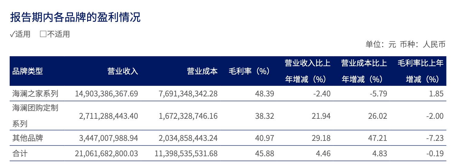 2025年,主品牌贡献营收149.03亿元,占总营收的比重在69%左右。
