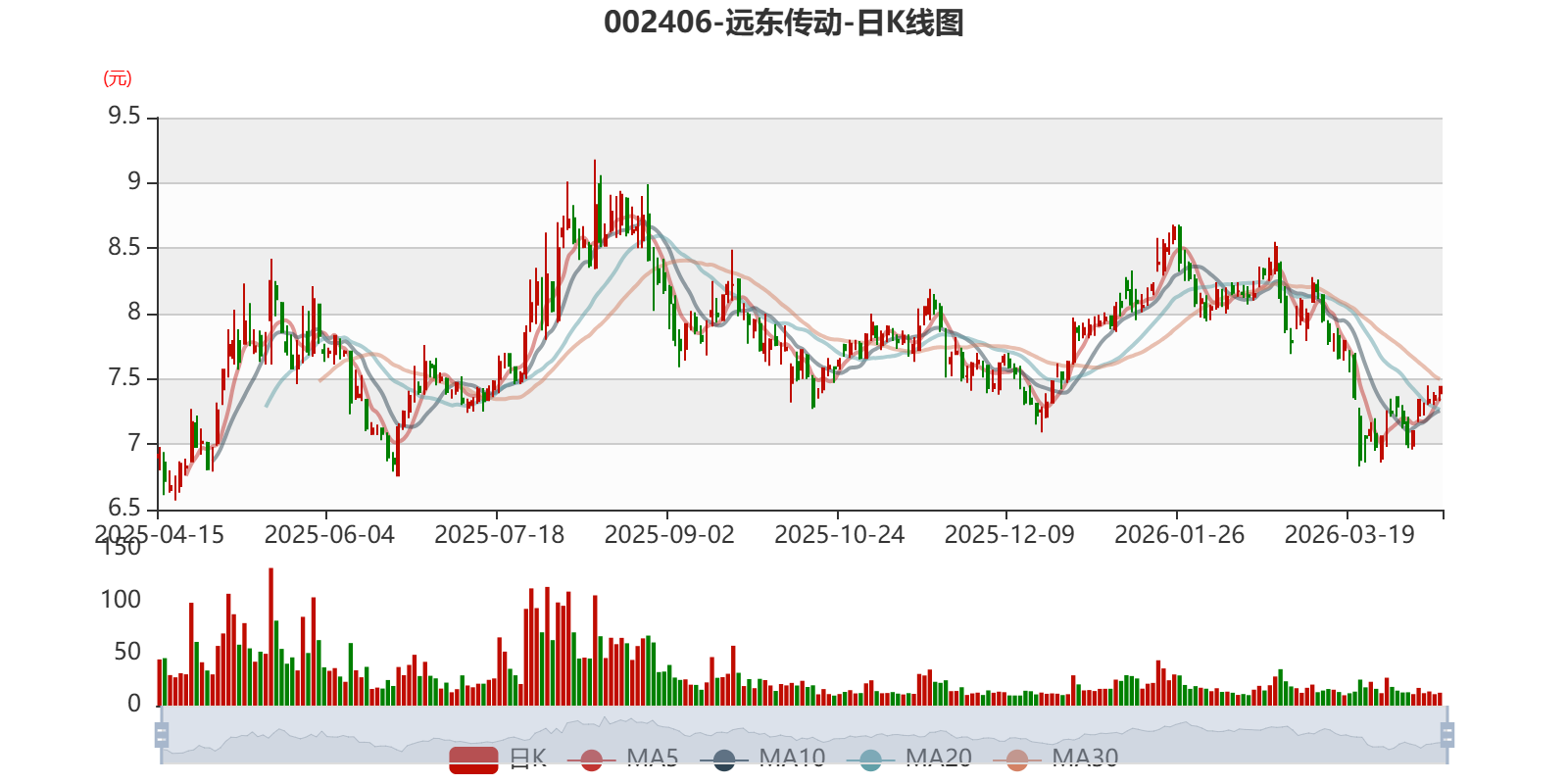 中证智能财讯远东传动(002406)4月14日晚间披露业绩预告,预计2026年一季度归母净利润4200万元至5000万元,同比增长47.9%-76.07%;扣非净利润预计3200万元至4000万元,同比增长59.03%-98.78%;基本每股收益0.06元/股-0.07元/股。以4月14日收盘价计算,远东传动目前市盈率(TTM)约为30.55倍-31.99倍,市净率(LF)约1.33倍,市销率(TTM)约3.46倍。
