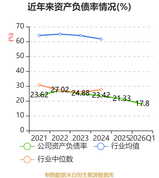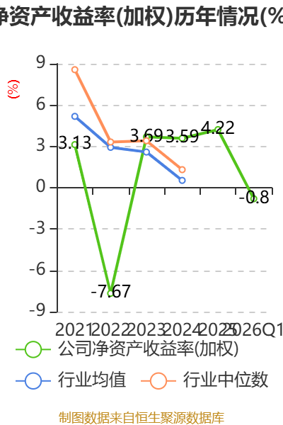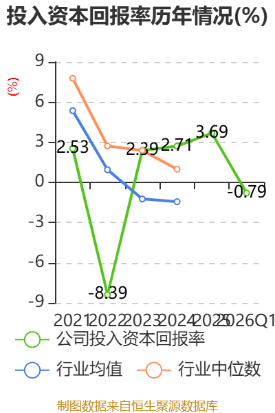 盈利能力方面, 2026年一季度公司加权平均净资产收益率为-0.8%,同比下降0.45个百分点。公司2026年第一季度投入资本回报率为-0.79%,较上年同期下降0.39个百分点。