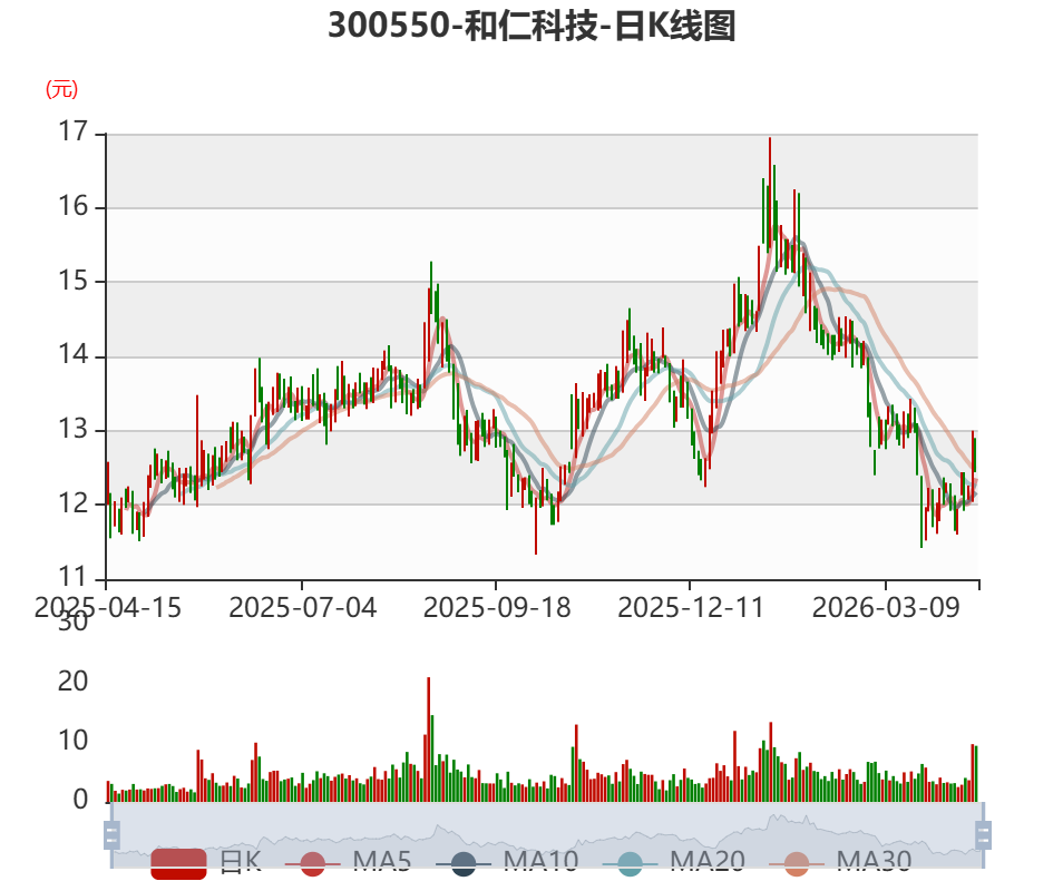 中证智能财讯和仁科技(300550)4月15日披露2026年第一季度报告。公司实现营业总收入7601.55万元,同比下降3.04%;归母净利润亏损918.55万元,上年同期亏损384.41万元;扣非净利润亏损1008.31万元,上年同期亏损442.95万元;经营活动产生的现金流量净额为-6201.47万元,上年同期为-3338.61万元;报告期内,和仁科技基本每股收益为-0.035元,加权平均净资产收益率为-0.80%。