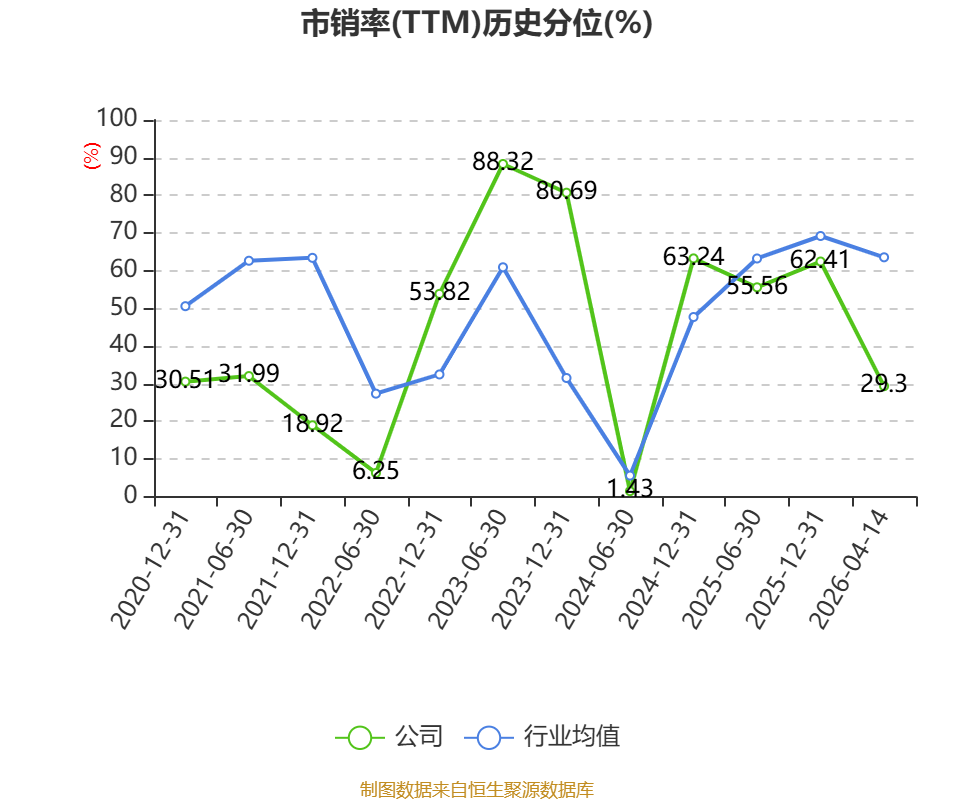 以4月14日收盘价计算,和仁科技目前市盈率(TTM)约为78.91倍,市净率(LF)约2.92倍,市销率(TTM)约7.72倍。