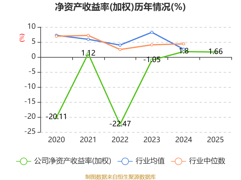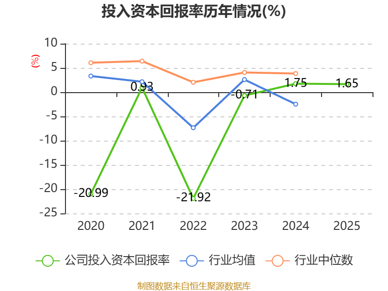 数据显示,2025年公司加权平均净资产收益率为1.66%,较上年同期下降0.14个百分点。公司2025年投入资本回报率为1.65%,较上年同期下降0.1个百分点。