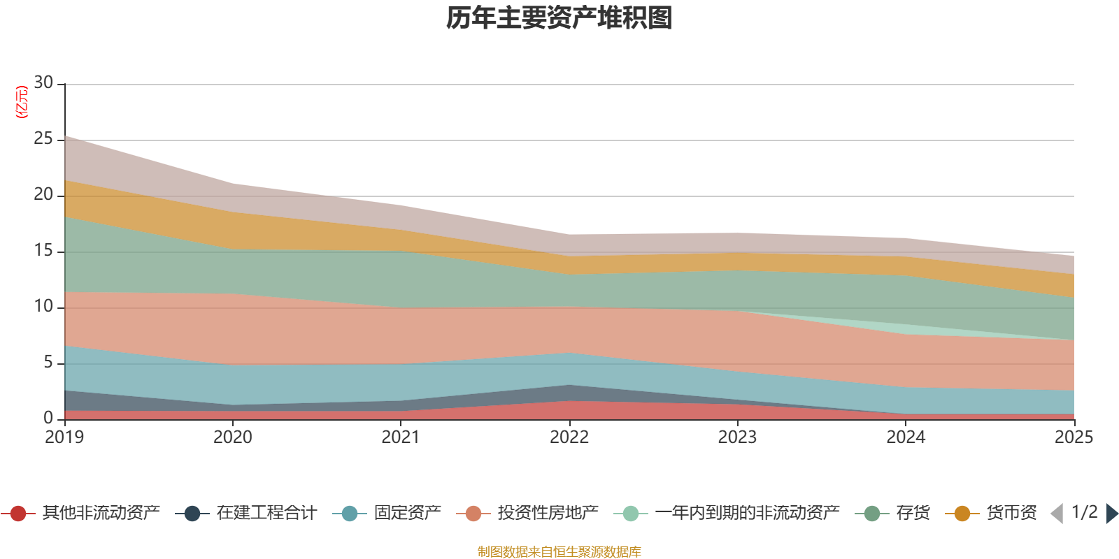 资产重大变化方面,截至2025年末,公司一年内到期的非流动资产较上年末减少100%,占公司总资产比重下降5.43个百分点;货币资金较上年末增加23.5%,占公司总资产比重上升3.89个百分点;投资性房地产较上年末减少5.21%,占公司总资产比重上升1.5个百分点;长期股权投资占公司总资产的1.39%,上年末为0。