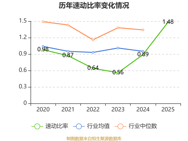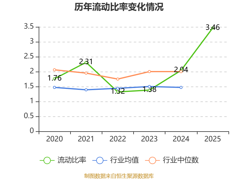 2025年,公司流动比率为3.46,速动比率为1.48。