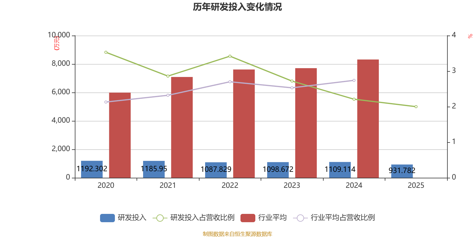 2025年全年,公司研发投入金额为931.78万元,同比下降15.99%;研发投入占营业收入比例为2%,相比上年同期下降0.21个百分点。此外,公司全年研发投入资本化率为0%。