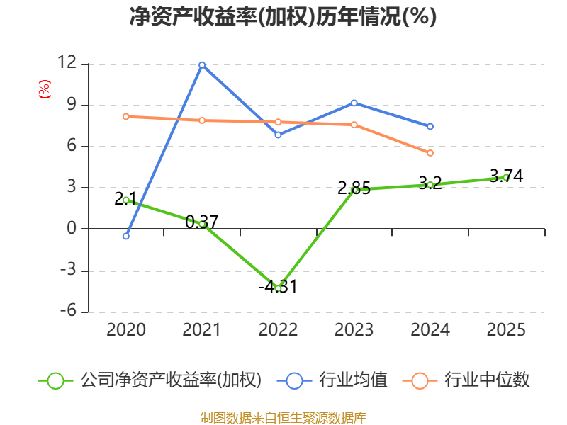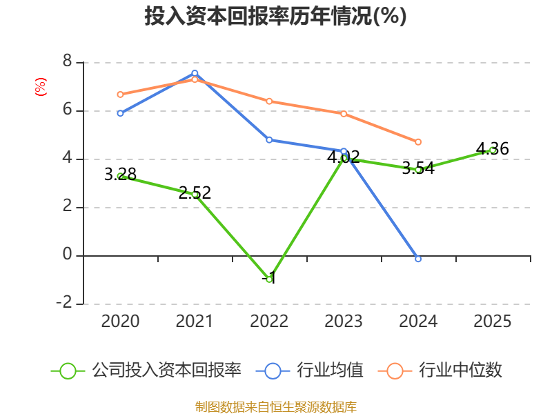 数据显示,2025年公司加权平均净资产收益率为3.74%,较上年同期上升0.54个百分点。公司2025年投入资本回报率为4.36%,较上年同期上升0.82个百分点。