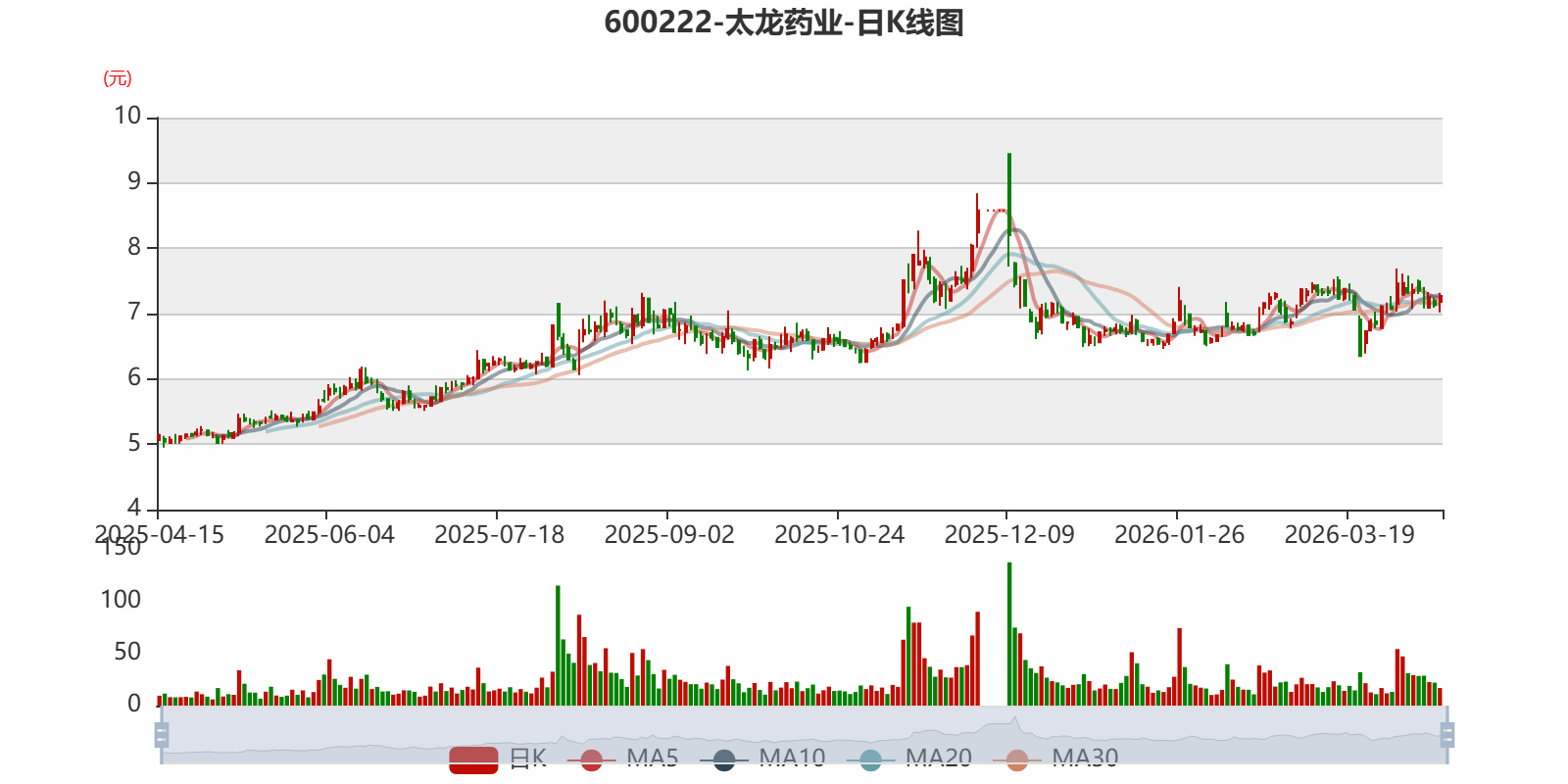 值得注意的是,中登公司数据显示,截至2026年4月10日,太龙药业15.9%股份处于质押状态。年报显示,第二大股东郑州众生实业集团有限公司质押5000万股公司股份,占其全部持股的100%;第一大股东郑州泰容产业投资有限公司质押4122.06万股公司股份,占其全部持股的50%。