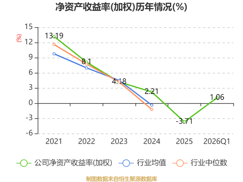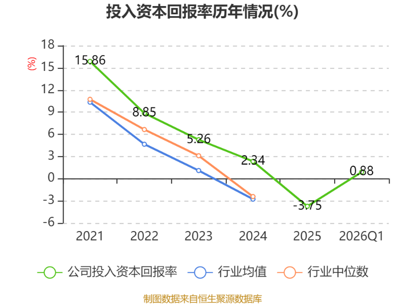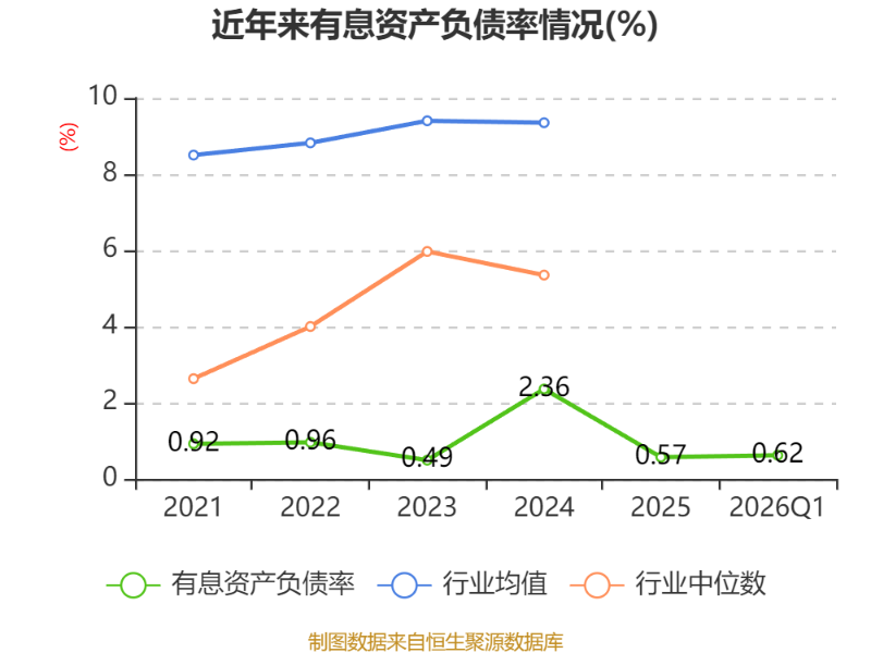 盈利能力方面, 2026年一季度公司加权平均净资产收益率为1.06%,同比上升0.43个百分点。公司2026年第一季度投入资本回报率为0.88%,较上年同期上升0.1个百分点。