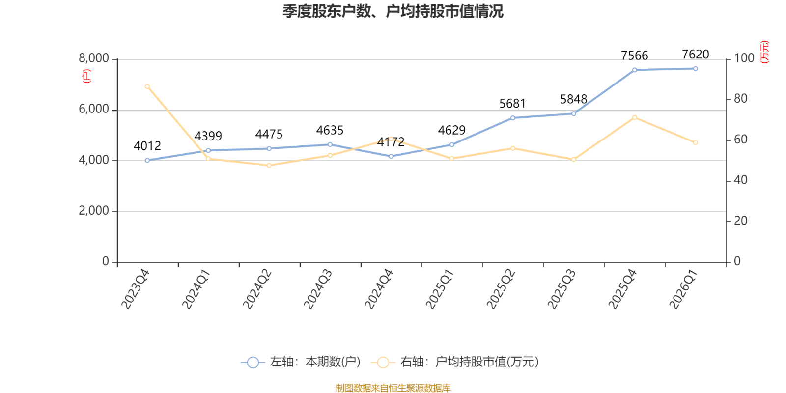 一季报显示,2026年一季度末的公司十大流通股东中,新进股东为中海优质成长证券投资基金,取代了上年末的谢英英。在具体持股比例上,任晓锋持股有所上升,黄庆清持股有所下降。