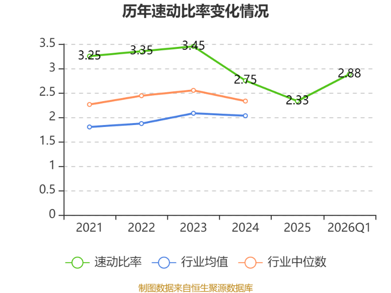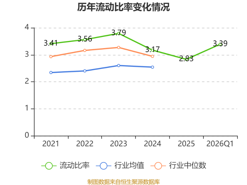 2026年第一季度,公司流动比率为3.39,速动比率为2.88。