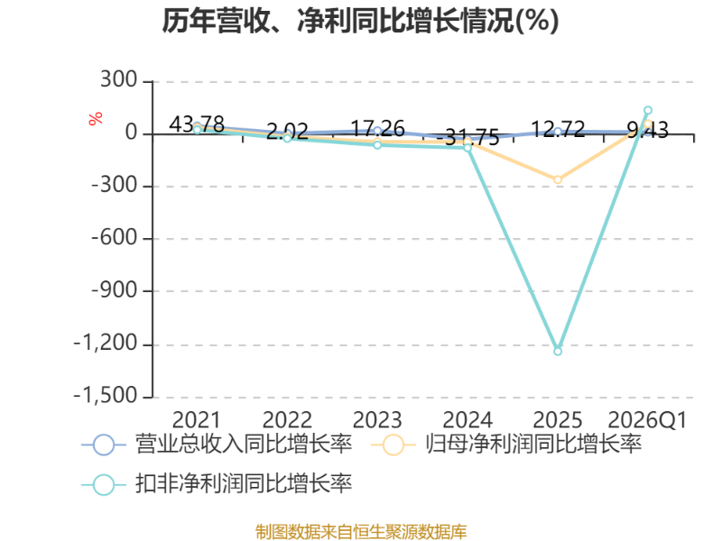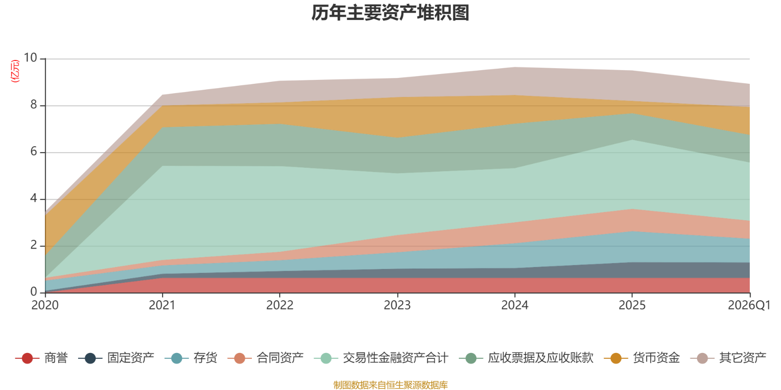 资产重大变化方面,截至2026年一季度末,公司货币资金较上年末增加126.02%,占公司总资产比重上升7.81个百分点;其他流动资产较上年末减少93.34%,占公司总资产比重下降4.11个百分点;交易性金融资产合计较上年末减少15.62%,占公司总资产比重下降3.16个百分点;存货较上年末减少23.17%,占公司总资产比重下降2.53个百分点。