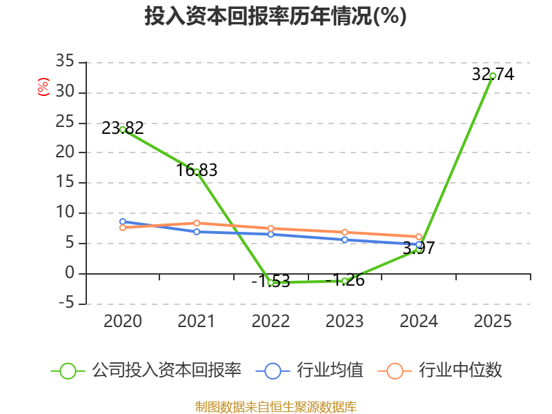 数据显示,2025年公司加权平均净资产收益率为41.14%,较上年同期上升36.36个百分点。公司2025年投入资本回报率为32.74%,较上年同期上升28.77个百分点。