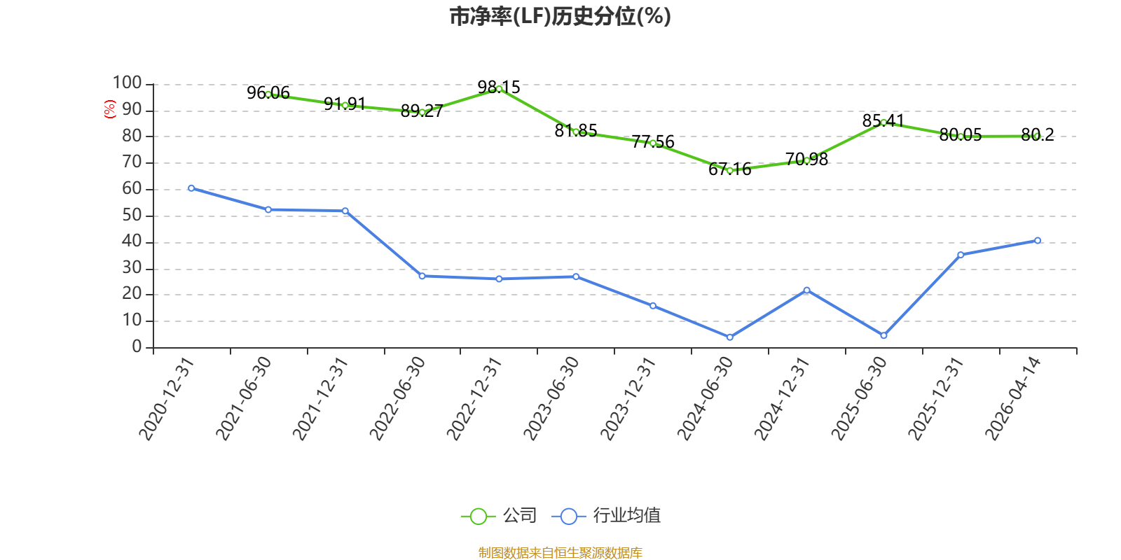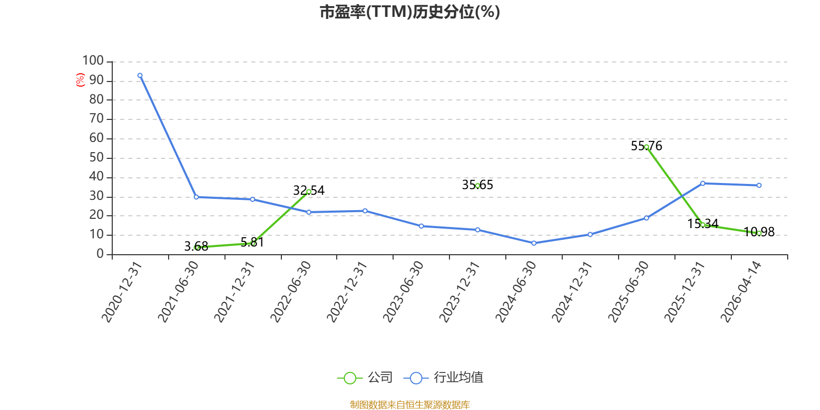 市盈率、市净率为负时,不显示当期分位数,会导致折线图中断。
