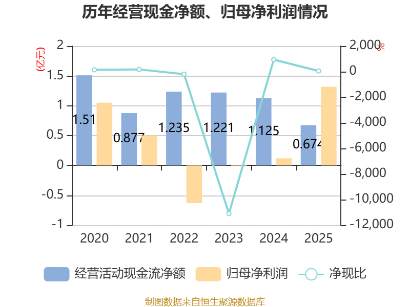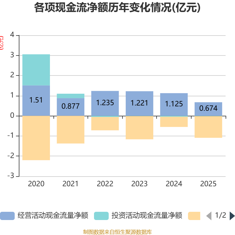 截至2025年,公司经营活动现金流净额为6744.34万元,同比下降40.06%;筹资活动现金流净额-1.07亿元,同比减少5655.77万元;投资活动现金流净额-168.13万元,上年同期为-435.81万元。