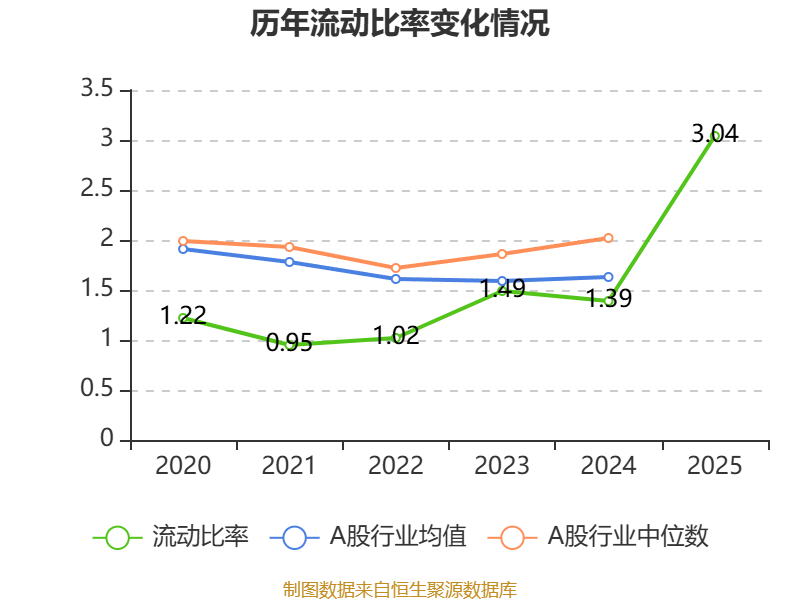 2025年,公司流动比率为3.04,速动比率为2.8。