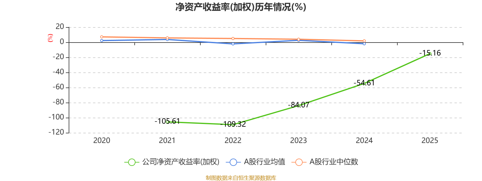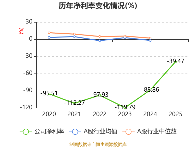 数据显示,2025年公司平均净资产收益率为-15.16%,较上年同期上升39.45个百分点。