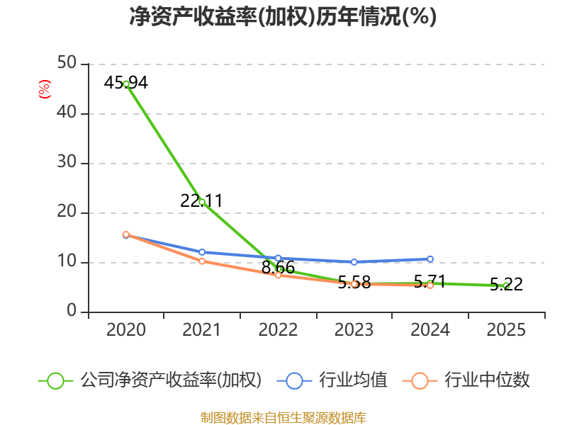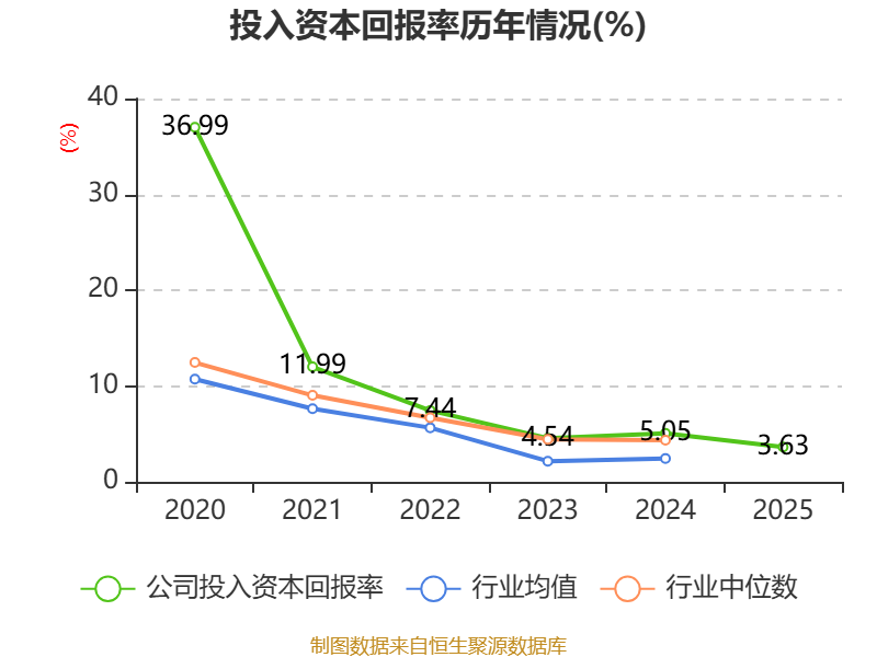 数据显示,2025年公司加权平均净资产收益率为5.22%,较上年同期下降0.49个百分点。公司2025年投入资本回报率为3.63%,较上年同期下降1.42个百分点。