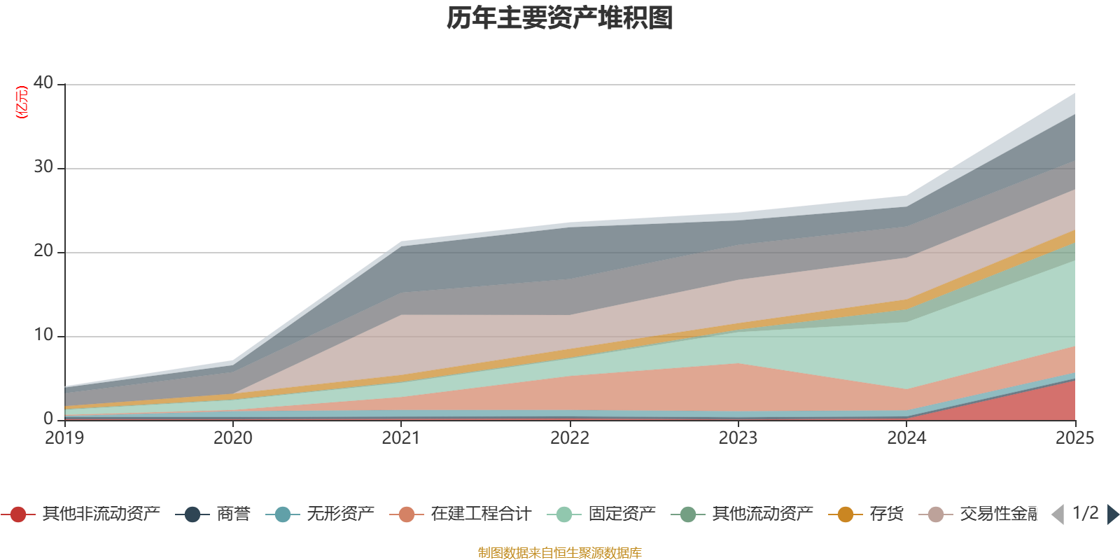 资产重大变化方面,截至2025年末,公司其他非流动资产较上年末增加2852.56%,占公司总资产比重上升11.45个百分点;交易性金融资产合计较上年末减少3.15%,占公司总资产比重下降6.24个百分点;货币资金较上年末增加134.58%,占公司总资产比重上升5.37个百分点;应收票据及应收账款较上年末减少7.55%,占公司总资产比重下降5.08个百分点。