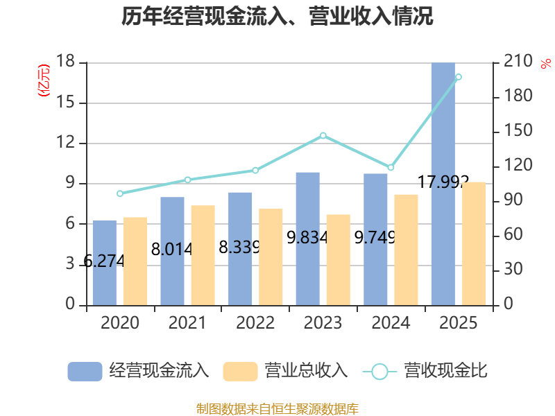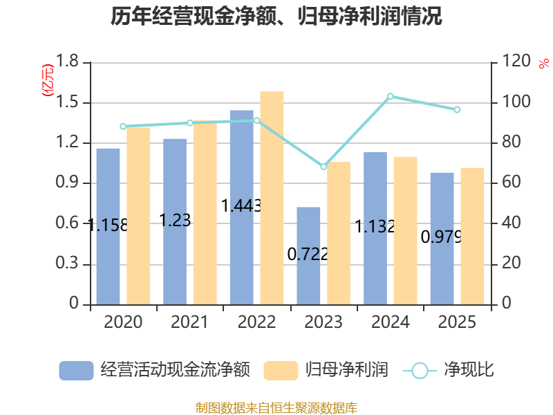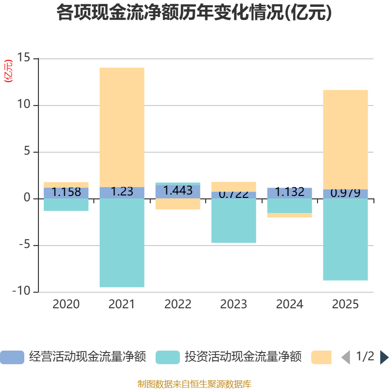 截至2025年,公司经营活动现金流净额为9789.3万元,同比下降13.5%;筹资活动现金流净额10.64亿元,同比增加11.13亿元;投资活动现金流净额-8.79亿元,上年同期为-1.56亿元。