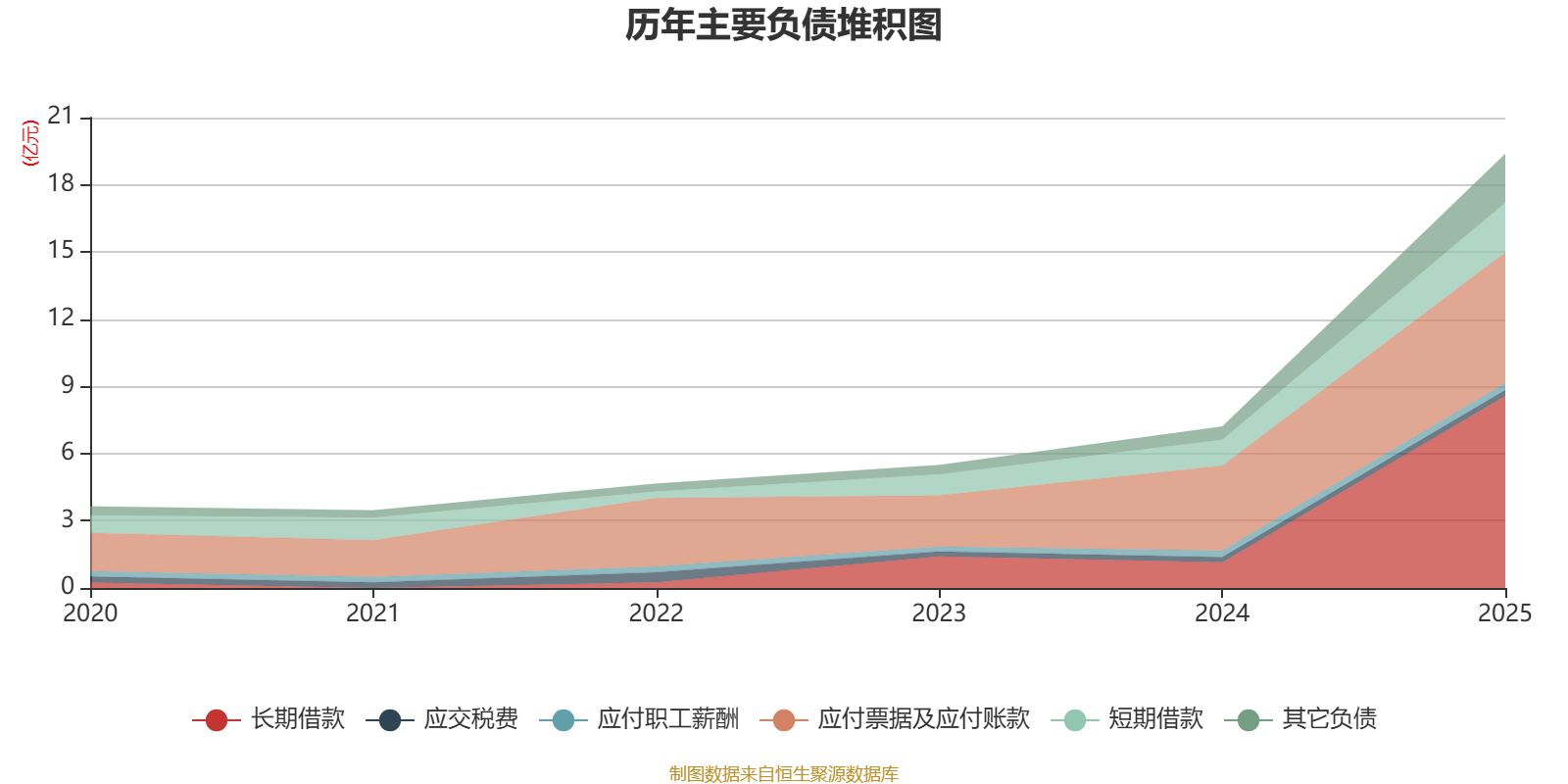 负债重大变化方面,截至2025年末,公司长期借款较上年末增加646.39%,占公司总资产比重上升17.72个百分点;其他流动负债较上年末增加3451.34%,占公司总资产比重上升2.17个百分点;短期借款较上年末增加90.87%,占公司总资产比重上升1.34个百分点;应付票据及应付账款较上年末增加53.98%,占公司总资产比重上升0.8个百分点。