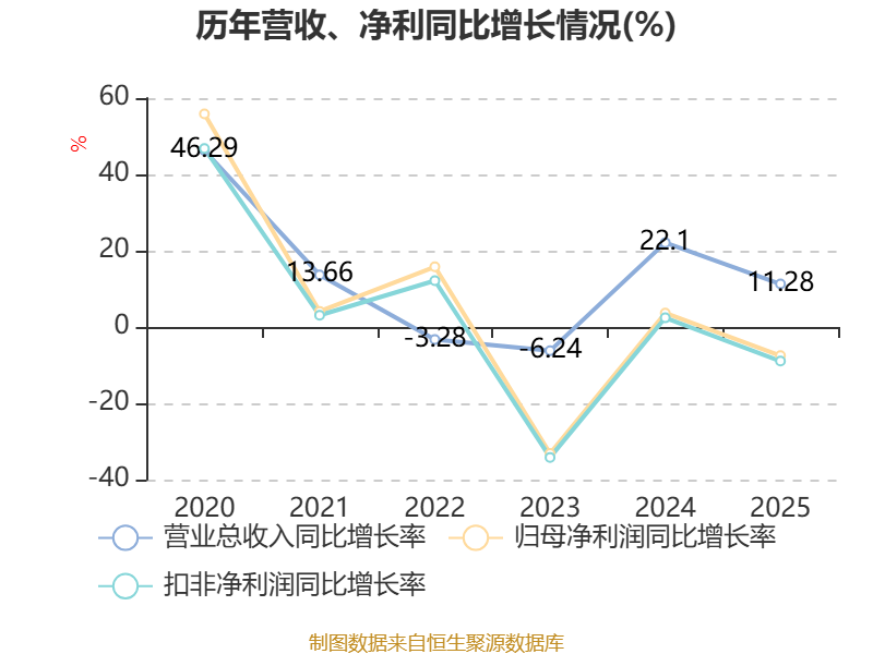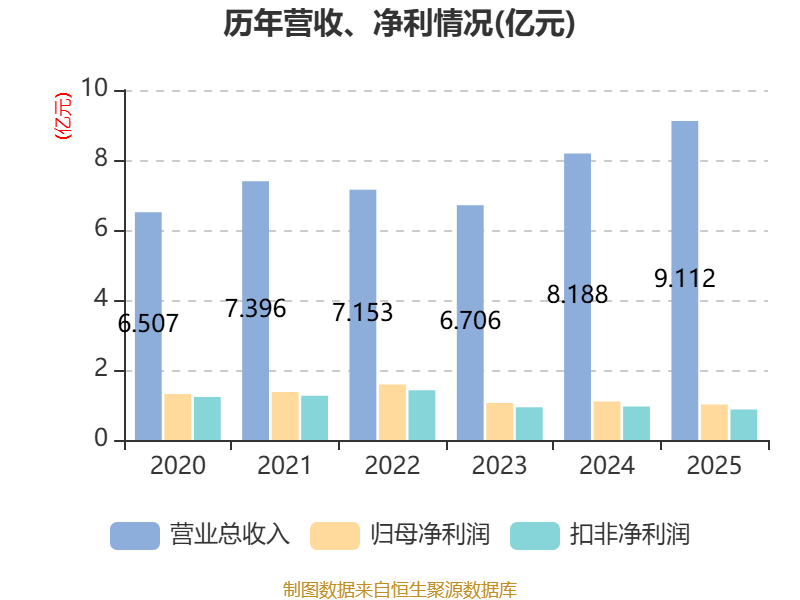 中证智能财讯鸿富瀚(301086)4月15日披露2025年年度报告。2025年,公司实现营业总收入9.11亿元,同比增长11.28%;归母净利润1.01亿元,同比下降7.52%;扣非净利润8716.6万元,同比下降8.95%;经营活动产生的现金流量净额为9789.3万元,同比下降13.50%;报告期内,鸿富瀚基本每股收益为1.13元,加权平均净资产收益率为5.22%。公司2025年度分配预案为:拟向全体股东每10股转4股,派现6元(含税)。