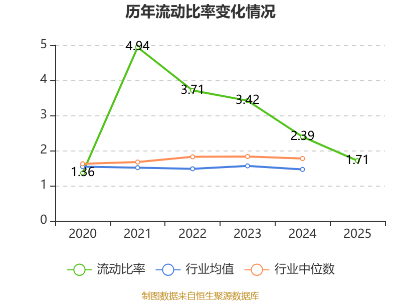 2025年,公司流动比率为1.71,速动比率为1.56。