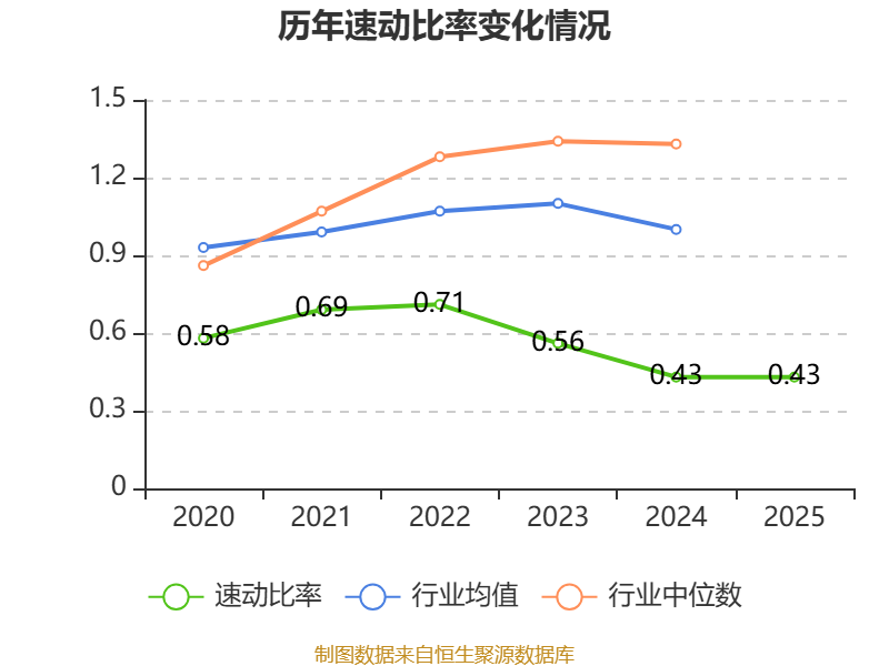 2025年,公司流动比率为0.81,速动比率为0.43。