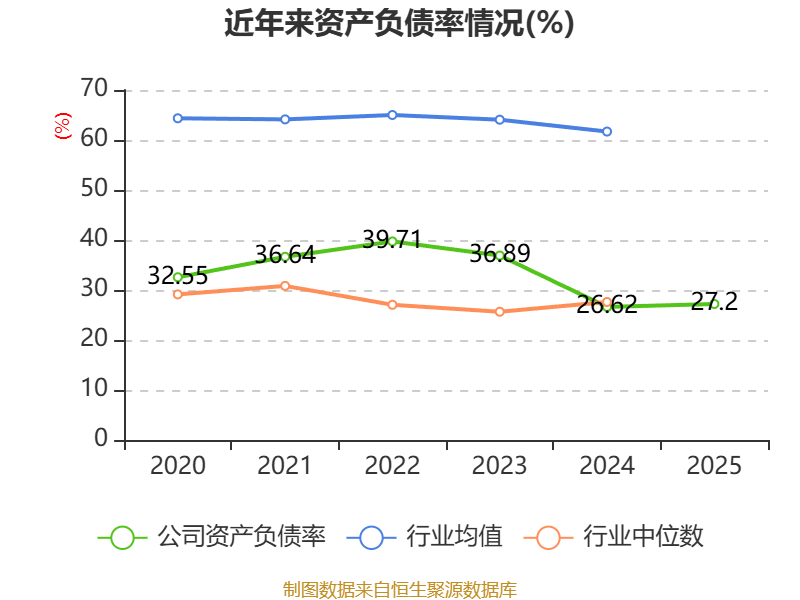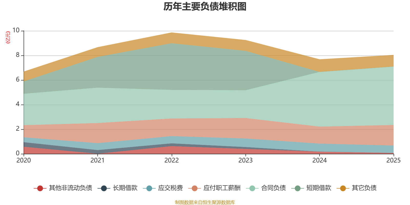负债重大变化方面,截至2025年末,公司应付职工薪酬较上年末增加21.04%,占公司总资产比重上升0.88个百分点;合同负债较上年末增加6.88%,占公司总资产比重上升0.69个百分点;其他非流动负债较上年末减少63.83%,占公司总资产比重下降0.38个百分点;预计负债较上年末减少54.37%,占公司总资产比重下降0.35个百分点。