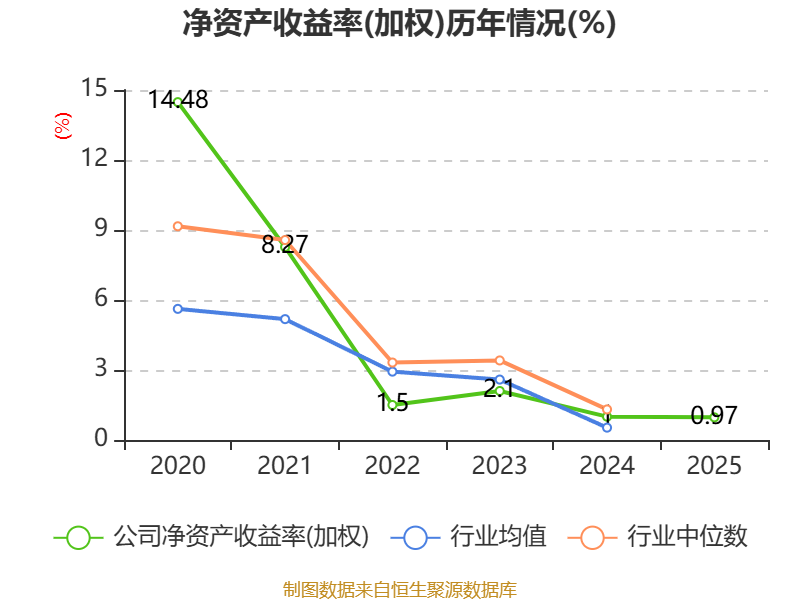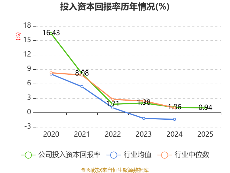 数据显示,2025年公司加权平均净资产收益率为0.97%,较上年同期下降0.03个百分点。公司2025年投入资本回报率为0.94%,较上年同期下降0.12个百分点。