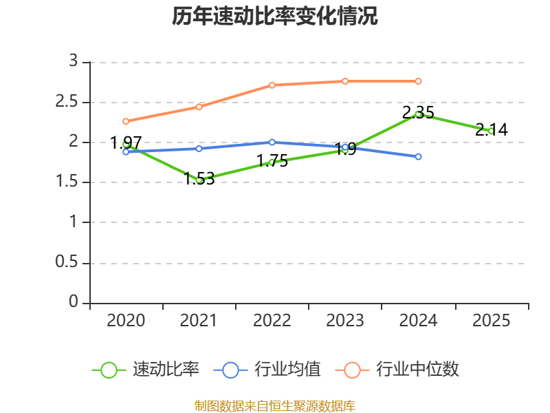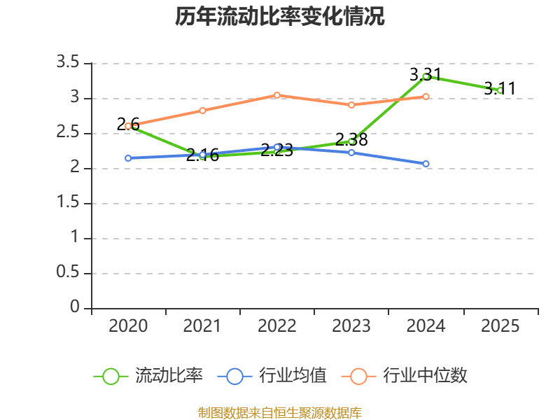 2025年,公司流动比率为3.11,速动比率为2.14。