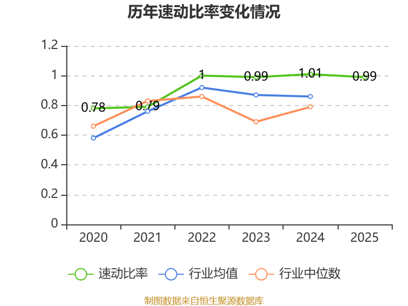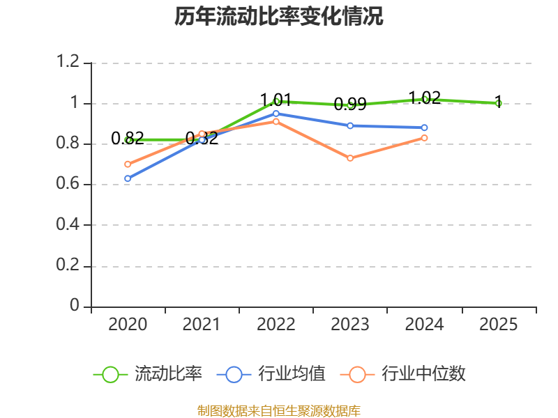 2025年,公司流动比率为1,速动比率为0.99。