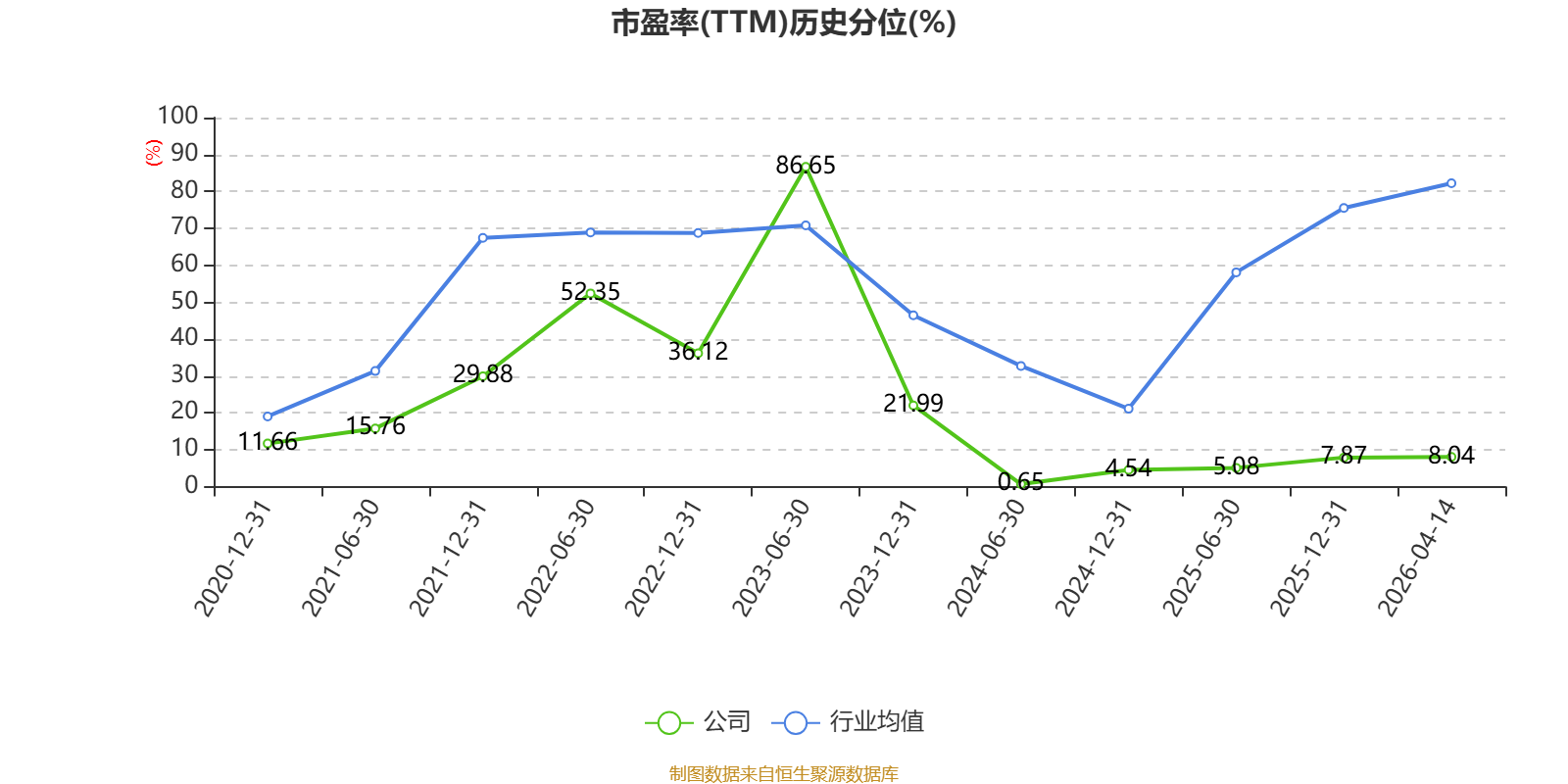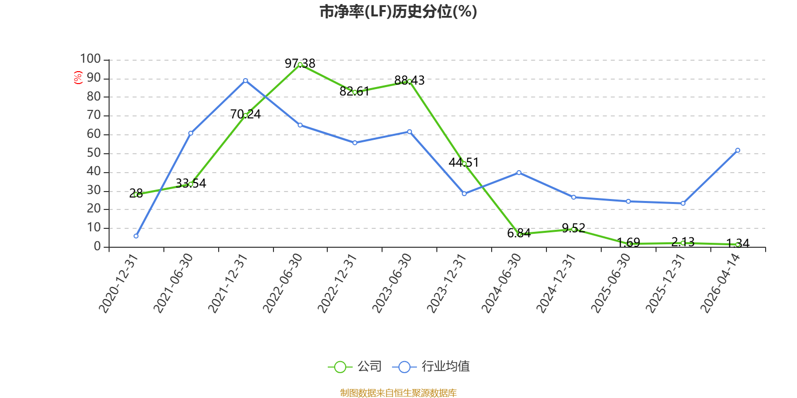 市盈率、市净率为负时,不显示当期分位数,会导致折线图中断。