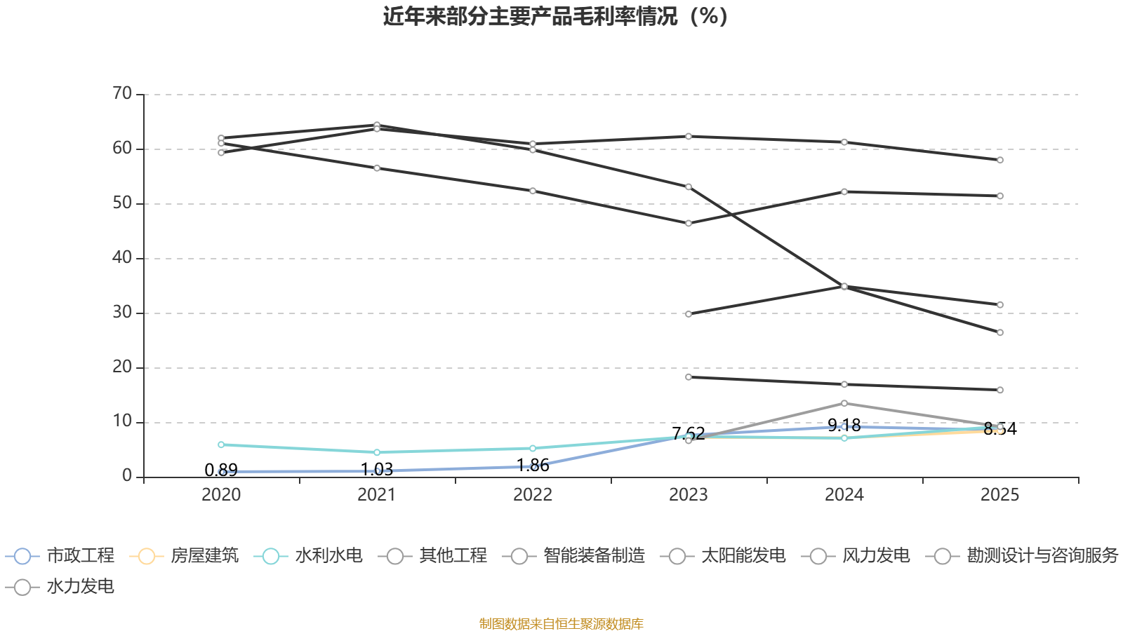 资料显示,公司主要业务覆盖建筑工程、水利水电工程、市政公用工程、公路工程等,拥有集“建筑设计、技术研发、投资开发、施工建造、运营维护”于一体的“大建筑业”产业链条,以及水力、风力、太阳能、光伏等清洁能源发电及装备制造业务。