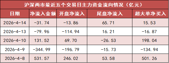 今日沪深两市主力资金开盘净流出13.86亿元,尾盘净流入65.71亿元,全天净流出31.74亿元。