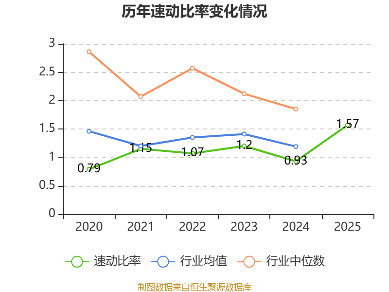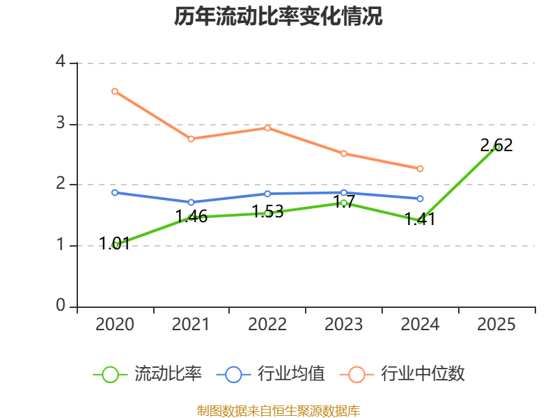 2025年,公司流动比率为2.62,速动比率为1.57。