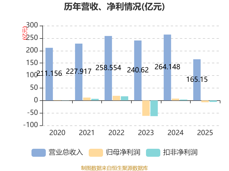 中证智能财讯纳思达(002180)4月15日披露2025年年度报告。2025年,公司实现营业总收入165.15亿元,同比下降37.48%;归母净利润亏损7.18亿元,上年同期盈利7.49亿元;扣非净利润亏损5.8亿元,上年同期盈利3.53亿元;经营活动产生的现金流量净额为11.98亿元,同比下降56.18%;报告期内,纳思达基本每股收益为-0.5096元,加权平均净资产收益率为-7.68%。