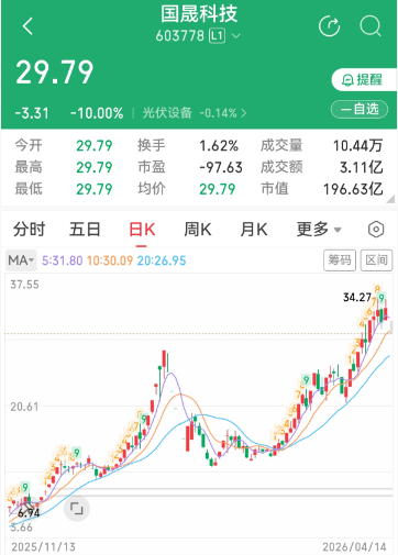 值得一提的是,在过去不到一年时间里,股价暴涨超过10倍的国晟科技(603778.SH)跌停,收盘时跌停板封单仍超过70万手。4月13日晚,该公司发布公告称,终止收购铜陵市孚悦科技有限公司100%股权,原因是本次交易先决条件中的并购贷款未达成。