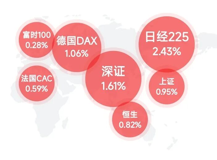 欧洲股市开盘也集体飘红,德国DAX30、欧洲斯托克50一度涨超1%;英国富时100、法国CAC40、富时意大利MIB也跟涨。美国三大股指期货同样震荡走强。