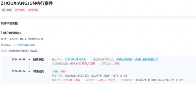 其中,ZHOUXiangjun名下价值626.8463万元的股权于2024年10月被深圳前海合作区人民法院冻结,其位于深圳南山的一处房产于2026年2月被该法院拍卖。