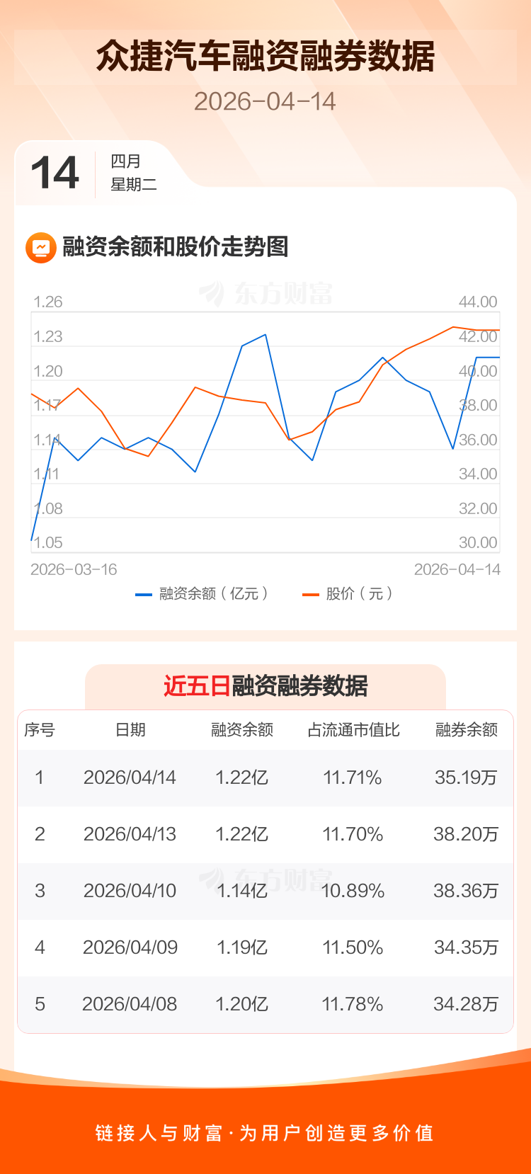 交易所最新数据显示,众捷汽车于2026年4月14日获融资买入518.08万元,融资偿还508.21万元,当日融资净买入9.87万元。目前,该股融资余额1.22亿,占流通市值比例为11.71%。