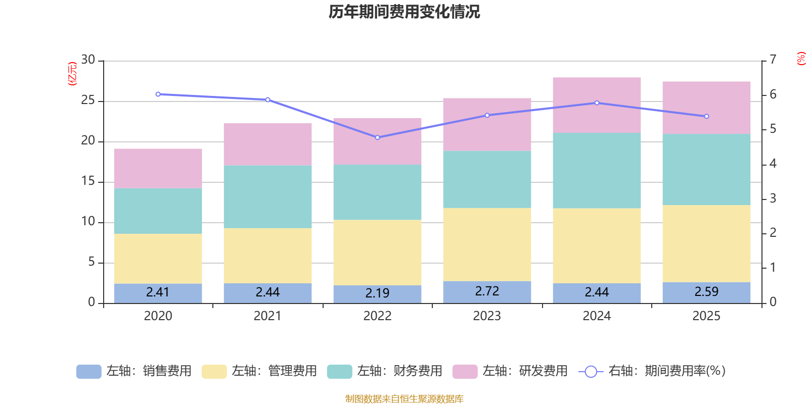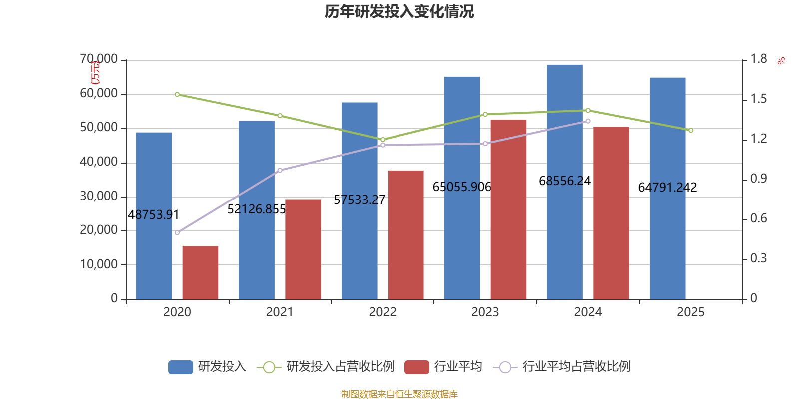 2025年全年,公司研发投入金额为6.48亿元,同比下降5.49%;研发投入占营业收入比例为1.27%,相比上年同期下降0.15个百分点。此外,公司全年研发投入资本化率为0%。