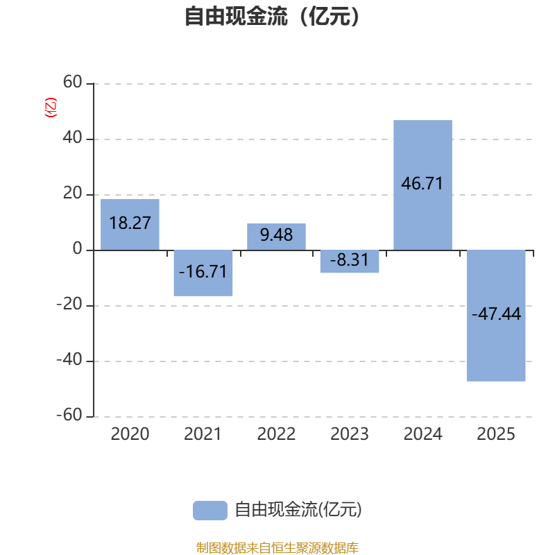 截至2025年,公司经营活动现金流净额为56.21亿元,同比增长24.64%;筹资活动现金流净额20.07亿元,同比增加56.05亿元;投资活动现金流净额-77.41亿元,上年同期为-25.63亿元。