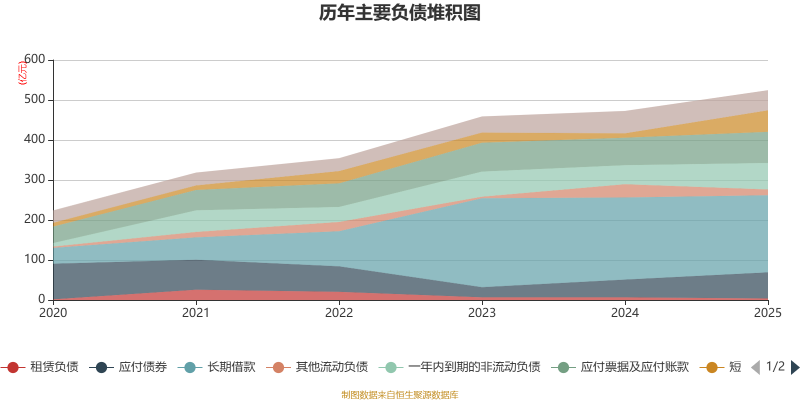 负债重大变化方面,截至2025年末,公司短期借款较上年末增加400.59%,占公司总资产比重上升5.12个百分点;长期借款较上年末减少6.11%,占公司总资产比重下降3.53个百分点;其他流动负债较上年末减少56.57%,占公司总资产比重下降2.6个百分点;应付债券较上年末增加47.31%,占公司总资产比重上升2.1个百分点。