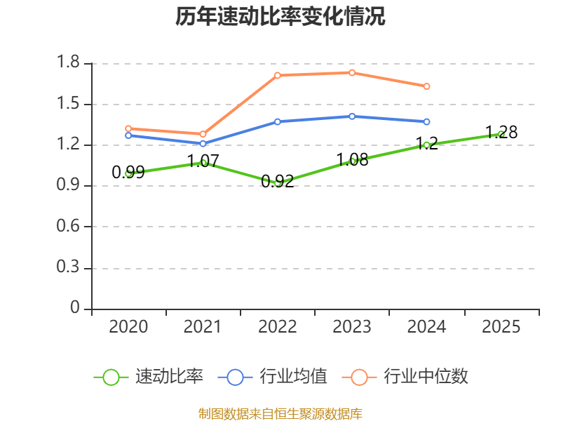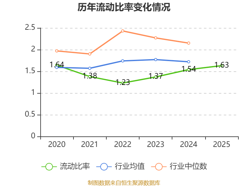 2025年,公司流动比率为1.63,速动比率为1.28。