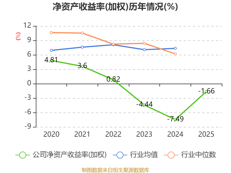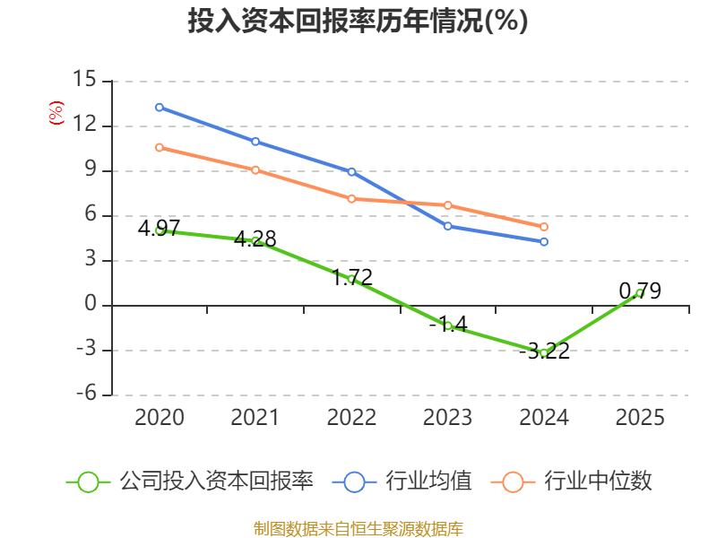 数据显示,2025年公司加权平均净资产收益率为-1.66%,较上年同期上升5.83个百分点。公司2025年投入资本回报率为0.79%,较上年同期上升4.01个百分点。